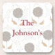 Aménagé avec élégance, ce dessous de verre floral gris et bordeaux présente un motif floral gris et bordeaux avec personnalisation du nom au centre. Achetez ce dessous de verre aujourd'hui ! Oeuvre créée par : Conception de Prettygrafik (https://www.etsy.com/shop/Prettygrafikdesign)