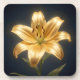Golden lily flower in full bloom, luminous metallic gold petals with soft gradient highlights. Delicate natural detailing, dark moody background for dramatic contrast.