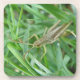 Ce magnifique dessous de verre en liège comprend une macro photo détaillée d'une petite sauterelle verte avec des marques marron en motte sur l'herbe. Sur la photo vous pouvez voir le détail des jambes articulées, des antennes longues et des yeux noirs et or de la sauterelle.