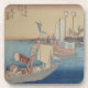 Arai watashibune no zu, "Ferry Boats at Arai." Montre des bateaux de ferry à l'extérieur de la barrière - vue sur le rivage éloigné - qui était l'un des plus importants sur le Tokaido. De l'ensemble le plus célèbre d'Hiroshige : Tokaido gojusan tsugi no uchi, "Les Cinquante-Trois Stations du Tokaido". L'ensemble publié conjointement par Takenouchi Magohachi (Hoeido) et Tsuruya Kiemon (Senkakudo), 1833-34.