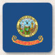 Le Flag of the state of the Idaho consis ts of the state seal on a field of blue. "État de l'Idaho" appear in gold letters on a red and gold band below the seal. according to the official description of the flag, there should be a fringe of gold around the edges, but a long time the versions of the flag not shown until they remodeled the flag after. The seal, in the center of the flag, depicts a miner and a woman representing equality, liberty and justice. The symbos on the seal represent some of Idaho’s natural resources: mines, forests, farmland, and wildlife.
