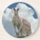 Photo d'un kangourou mâle sur l'arrière - plan du ciel bleu et des nuages blancs bouffants.