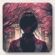 Design informatique d'une geisha dans un sort de cerisier. Image d'une femme avec une jolie coiffure et des fleurs dans les cheveux qui portent un kimono. Le design japonais dans le style AI - Midjourney. Arrière-plan sombre avec des bubbles qui s'attaquent au feu. En arrière-plan, il y a un bâtiment qui sort d'une lumière brillante qui vous donne un sentiment familier et mélancolique.