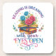 Design coloré et dynamique avec un dragon avec une pile de livres, le top ouvert avec des roses bleues et roses. Le texte coloré dit : "Lire c'est rêver les yeux ouverts". Ce design est disponible sur une grande variété de produits.
