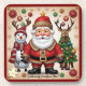 Un design festif avec un bonhomme de neige, Père Noël, cerf et un sapin décoré, dressé contre un arrière - plan fleuri en or et pointillé, évoquant la chaleur et la magie des vacances. "Image originale générée par Meta AI. L'IA a généré des oeuvres d'art. Licence CC BY-SA 4.0."