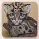 Cette image montre un petit animal opacifié de léopard étant tenu avec une paire de gants. Tandis que plus étroitement lié à de grands chats, le léopard opacifié est fréquemment décrit en tant qu'établir le lien entre de grands et petits chats dus en grande partie de sa plus petite stature. Il a des jambes proportionnellement courtes et une longue queue. Le manteau est brun ou jaunâtre-gris et couvert de rayures, de taches et de taches foncées irrégulières. | "Smithsonien" et le logo de Smithsonien sont des marques déposées possédées par Smithsonian Institution.
