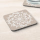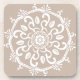 Ce mandala blanc est assis sur un arrière - plan brun clair ou bronzé. La couleur est douce et naturelle. Dans certaines lumières, il peut ressembler à un gris chaud. Partie de la collection Payon Mandala.