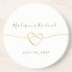 Simple, élégant, minimaliste, personnalisé pur dessous de verre de décoration mariage blanc, avec un coeur de corde en or faux et script de calligraphie moderne.