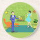 Ces dessous de verre modernes de grès de couples de la moitié du siècle ressemblent à une scène hors d'une comédie romantique. Le style des années 1960, caractéristiques de conception minimalistes d'art un couple attrayant de bande dessinée appréciant égaliser romantique à la maison. La salle sophistiquée comporte en évidence un mur en pierre vert avec un feu d'hurlement dans la cheminée. L'ameublement dans la chambre inclut une orange, la chaise longue avec le tabouret assorti, un rouge, l'horloge murale de starburst, un jaune, l'appareil d'éclairage de spoutnik, et une table latérale orange, qui est à la maison à un vert, tourne-disque portatif. Sur le plancher près de la table d'extrémité, un disque vinyle peut être pousser vu hors d'une couverture kitschy d'album. Au centre du plancher vert, il y a une grande, rectangulaire, turquoise couverture. Au milieu de la scène, nous avons un couple très sophistiqué. Il y a un homme suave dans un costume de bleu royal, une chemise blanche et une cravate d'arc bleue. L'homme grand, sombre et bel regarde fixement son beau compagnon. L'élégant, femme d'une chevelure de corbeau porte une robe d'aqua de flouncy. Ils sont chaque participation par verre en cristal de martini avec une olive de flottement. À la votre ! Voici à égaliser parfait à la maison !