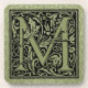 Première lettre de la lettre M de monogramme de calligraphie de typographie initiale décorative avec du charme de style dans le noir au-dessus du vert sauge vintage - la doublure de Livre vert d'avocat avec outre du ginkgo biloba blanc part.