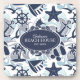 Ce dessous de verre en plastique dur dispose d'un motif d'été amusant d'éléments nautiques, y compris l'ancre, la mouette, l'étoile de mer et bien d'autres, le tout en bleu marine avec des tourbillons et des accents bleu aqua ondulé. Ajoutez votre nom et/ou tout autre texte à l'aide du modèle fourni. Recherchez ID839 et ID840 pour voir d'autres produits avec cette conception et des options de couleur supplémentaires.