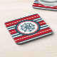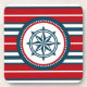Design nautique avec décoration de boussole en forme ronde sur arrière - plan rayé rouge, bleu et blanc