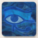 Dessous de verre avec l'oeil de Horus texturé bleu abstrait design. Ce design présente l'oeil Horus dans les tons bleus sur les yeux Horus défraîchis dans l'arrière - plan.