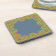 Un ensemble de très jolis Dessous de verre, carré, à dos de liège ou de Mats à Boire, avec une bordure de fleurs Pot Marigold sur un arrière - plan Indigo. Une partie de la collection Posh & Painterly 'Marigold Medley'.