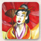avec un design original de peinture aquarelle de Geisha japonais en kimono avec parapluie rouge et arrière - plan jaune. Lumineuse et colorée, inspirée de l'art oriental et asiatique, cette belle dame vient de la région japonaise de Kyoto.