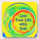 Vivez votre vie avec Zest avec une tranche d'agrumes psychédéliques sur des dessous de verre orange vif, vert, bleu et jaune. Une tranche de citron, de chaux ou d'orange à la mer dans une boisson mélangée tourbillonnante, ce dessous de verre tropical multicolore de 6 a une ambiance pop rétro qui est amusante et colorée. Customisez avec le nom, les initiales et/ou le texte. Cette image est une photographie originale de JLW_PHOTOGRAPHY.