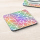 Thin webbing in plain white on a bright rainbow gradient negative space.