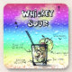 Une partie d'une amusante série de guides de barman avec des recettes de boisson. Celui-ci pour un Whiskey Sour fait avec un mélange aigre, whisky, glaçons, segment de citron et une cerise rouge.