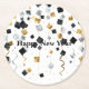 Dessous-de-verre Rond En Papier Black Gold Happy New Year Confetti
