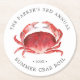 Dessous de verre de papier alimentaire sur le thème du crabe-crabe pour votre prochaine fête d'ébullition du crabe ou événement de fruits de mer. Il présente une illustration d'un crabe rouge de style aquarelle. Il y a des endroits autour de ce site pour vos informations uniques sur l'événement.