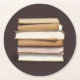 Dark Academia design. A stack of old, brown, bound books, with two spines showing: Charlotte Brontë’s Jane Eyre and Mary Shelley’s Frankenstein