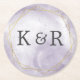 Dessous de verre papier rond Dusty Gold avec nuage d'aquarelle arrière - plan et double bordure graphique or sur les monogrammes sans serif