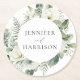 Dessous-de-verre Rond En Papier Fleurs blanches et verdure Mariage personnalisé