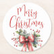 Dessous-de-verre Rond En Papier Joyeux Noël Script Holly Bow Rouge