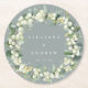 Dessous-de-verre Rond En Papier Mariage d'hiver Seafoam Green Snowberry+Eucalyptus