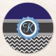 Dessous-de-verre Rond En Papier Monogramme bleu noir Chevron