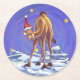 Camel de fête de la Parade animale Les cadeaux de Noël et les accessoires présentent notre oeuvre d'art amusante d'un mignon chameau brun tan décoré dans un chapeau de Père Noël, dans un paysage enneigé, contre un ciel étoilé bleu foncé texturé numériquement peint par notre talentueux illustrateur pour enfants, Traci Van Wagoner. Sur le dos de beaucoup de ces cadeaux amusants pour animaux, vous trouverez aussi notre drame de chameau du dos portant une couronne sacrée avec un arc rouge de Noël. Décorez votre maison et les boîtes aux lettres de votre ami cette année avec notre chameau plein d’humour, tous décorés pour la saison.