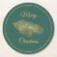 Dessous de verre en papier fêtes de Noël fait dans un vert foncé Kelly avec accent doré teinte. Graphiques dorés d'un cône de pin sur une branche de pin, décore le milieu. Joyeux Noël, en texte or, peut être personnalisé pour lire ce que vous voulez. Des fournitures de fête et des invitations correspondant sont disponibles.