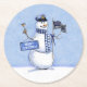 Dessous-de-verre Rond En Papier Police Mince Ligne Bleue Snowman Noël