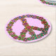 Un panneau de paix rétro / symbole de paix dessous de verre en papier rond ensemble avec teinture cravate couleurs et fleurs aux couleurs vives sur elle. Un design coloré, girly, joli pour les hippies fiers / amateurs de paix mondiale. Vous pouvez customiser la couleur arrière - plan rose.