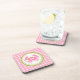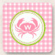 Bouchez les dessous de verre comportant un arrière - plan rose de guingan et un crabe rose à l'intérieur de cercle rose et vert décoratif. Personnalisez avec votre initiale.
