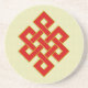Ces dessous de verre comportent un noeud sans fin (éternel ou le noeud de dragon), l'un des huit Symbold propice du bouddhisme, en rouge sur un arrière - plan jaune.
