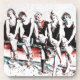 Oeuvre créée à partir d'une photographie rétro c1915. Sept mignonnes filles gagnent des costumes de bain assis sur un bateau renversé. Photo de femmes inconnues, source publique.