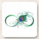 Le symbole de l'infinity with a bright, green, artistic peacock feather on a white background. Tattoo style.