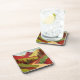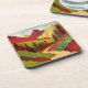 Un paysage abstrait avec des textures uniques montrant un paysage de montagne avec un sentier et des arbres randonnées et de beaux rayons de soleil dans les tons rouge, pourpre, jaune et vert.