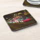 Coaster set with photo of tram decorated as a train with red, green, yellow and white lights in Blackpool as part of annual illuminations