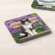 Dessous-de-verre Tuxedo cat sitting on a garchair with flowers