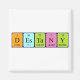 Destany spelled out as D Es Ta N Y (Deuterium Einsteinium Tantalum Nitrogen Yttrium) on a magnet for the scientist in you.