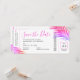 Destination tropicale ou balnéaire voyage d'anniversaire enregistrer la carte d'embarquement en rose vif, corail et violet ombre palmier feuilles (fronds) sur une carte d'embarquement simple, moderne, minimal et coloré billet d'avion enregistrer la carte d'embarquement. Tout le texte peut être personnalisé, ainsi que le texte et la couleur arrière - plan. Cliquez sur CUSTOMISER PLUS LOIN pour effectuer cette opération dans l'éditeur avancé. Les détails sur le voyage, l'hébergement et l'itinéraire au verso peuvent être remplis, ou enlevés entièrement si vous n'avez pas les plans finalisés.