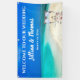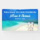 This Blue-Sky Destination Beach Wedding Reception Hanging Banner, is designed with a beautiful turquoise coloured water backdrop, and Wedding Ceremony Arbour on a white sandy beach. To personalize, simply insert the Bride & Groom's Names and Wedding Date into our easy template, replacing the sample text. Enjoy!