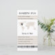 Introducing our electronic boarding pass style Save the Date card. This unique design features a world map with a destination pin you can move, perfect for couples who are planning a destination wedding. The card comes in a calming light beige colour that complements the elegant design. With easy-to-use customization tool, you can personalize your card with your names, wedding date, and other important details. Order now and make your special day even more memorable! Edit in design tool to move the location pin.
