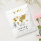 This design features a boarding pass theme. It showcases a gold map of the world along with two airplanes making a heart shape as they travel around the world. This destination themed wedding design is set out like a boarding pass with the date of the wedding personalized in the squares. A romantic destination design with an elegant touch. Ideal for a destination wedding no matter where in the world. The perfect all season travel wedding favour bag design. Matching wedding invitations and other stationery items are also available.
