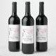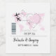 This design features a boarding pass theme. It showcases a pink map of the world along with two airplanes making a heart shape as they travel around the world. This destination themed wedding design is set out like a boarding pass with the date of the wedding personalized in the squares. A romantic destination design with an elegant touch. Ideal for a destination wedding no matter where in the world. The perfect all season travel wedding wine label design. Matching wedding invitations and other stationery items are also available.