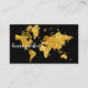 Nettoyez et carte métallique du monde d'or présentée sur la surface noire pour des agents de voyage et d'autres cartes professionnelles utiles de tourisme