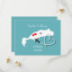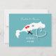 Un save the date amusant pour les couples qui se marient à Kos, avec une silhouette blanche de la carte de Kos sur fond sarcelle avec de doux cœurs d'amour rouges et si facile à personnaliser avec vos noms et message personnels