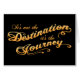 "It's not the destination it's the journey," text in swirly script lettering, blue or orange, on t-shirts, sweats, prints, novelty gift swag.